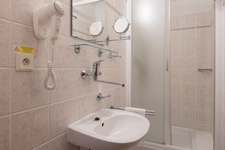 Standardně zařízené pokoje s manželskou postelí nebo oddělenými lůžky a vlastním sociálním zařízením (koupelna se sprchovým koutem nebo vanou, toaleta) na pokoji. U tří a čtyřlůžkových pokojů je vyjma manželské postele k dispozici 1 nebo 2 přistýlky. Na pokojích je k dispozici psací stůl, křesla, šatní skříň, ručníky, osušky, hygienické potřeby a fén. Samozřejmostí je Wi-Fi síť.
